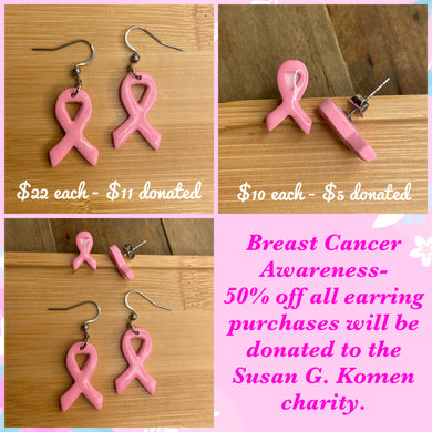 Breast Cancer Awareness Earrings- 50% Donated to the Susan G. Komen Charity