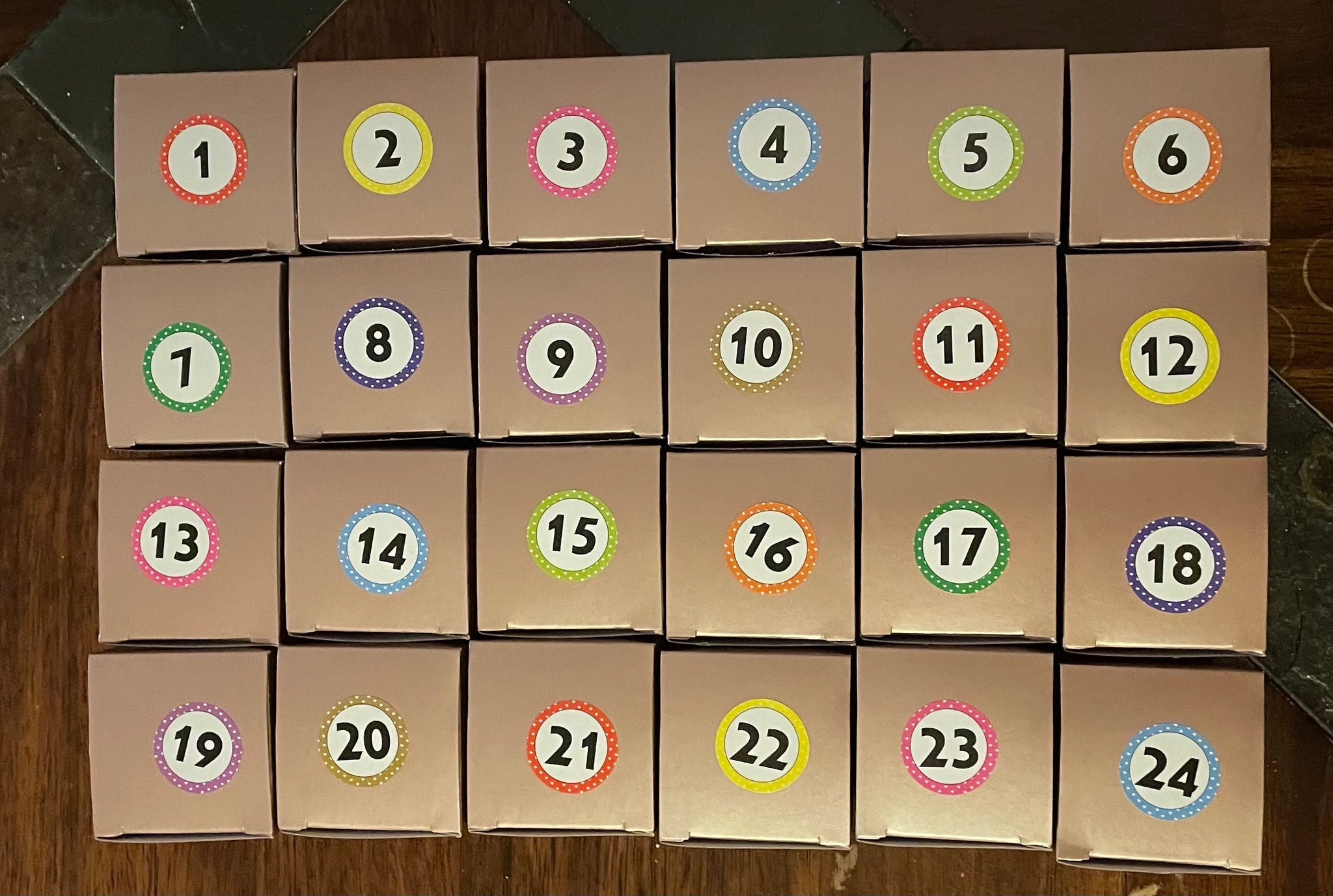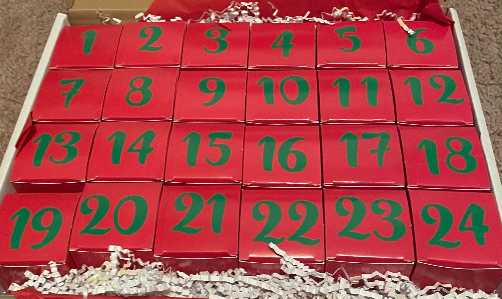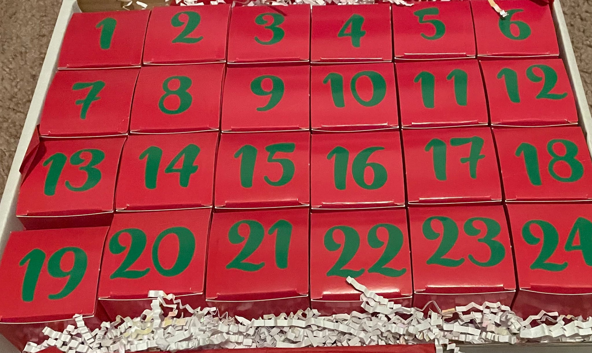 Represents December 1st through 12th. In individual numbered boxes.