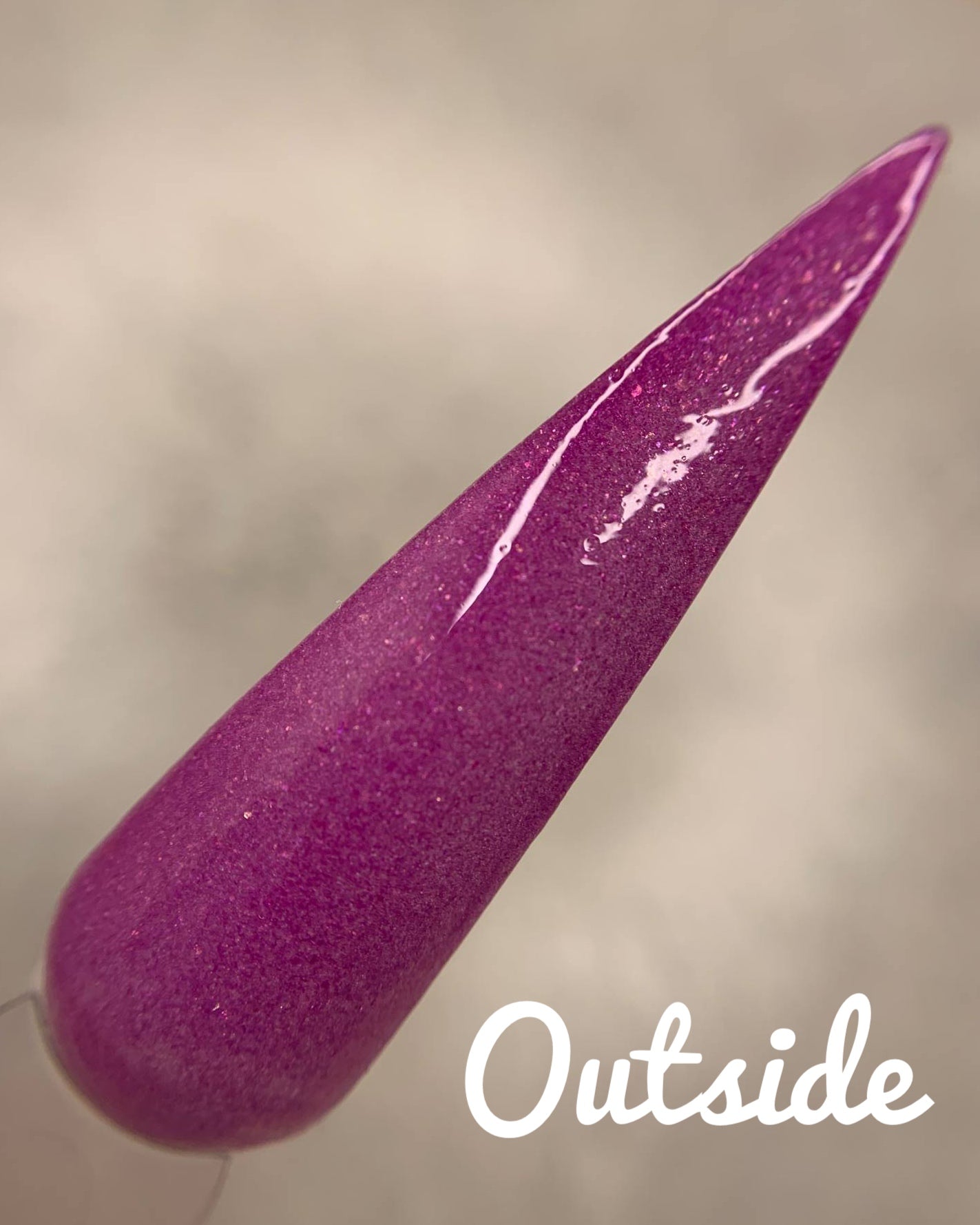 *UV changer with red shimmers that changes from pink to violet in the sun*