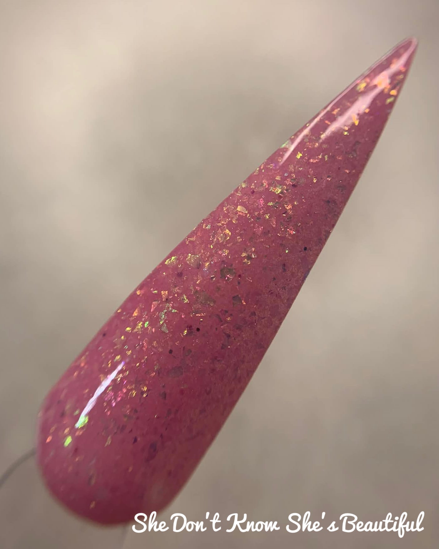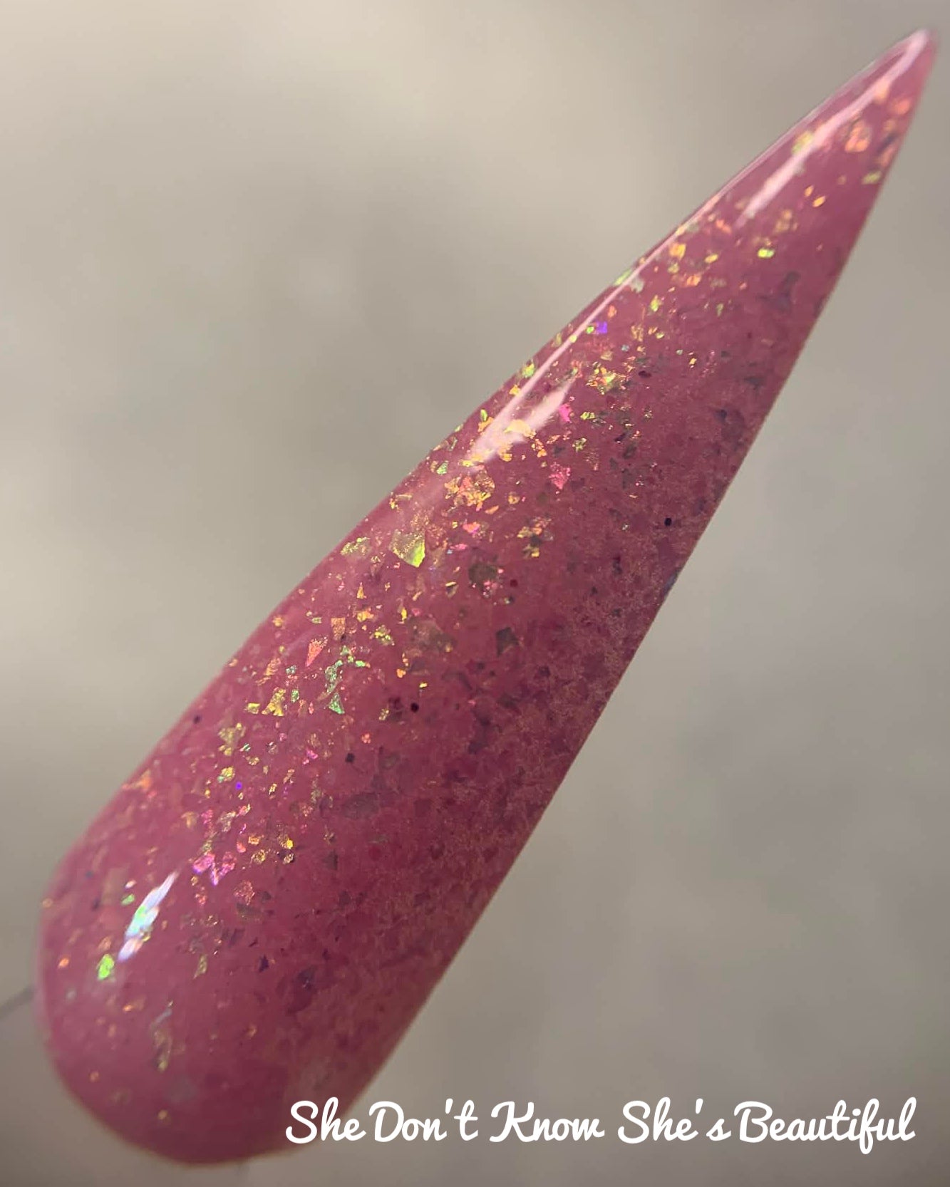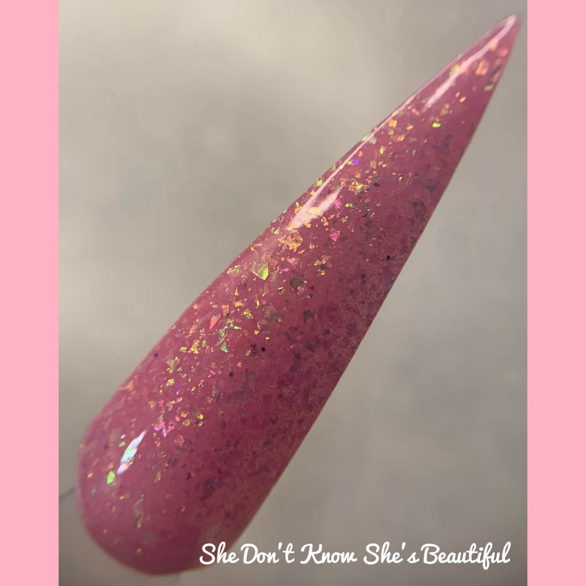 *Pink with opal flakes*