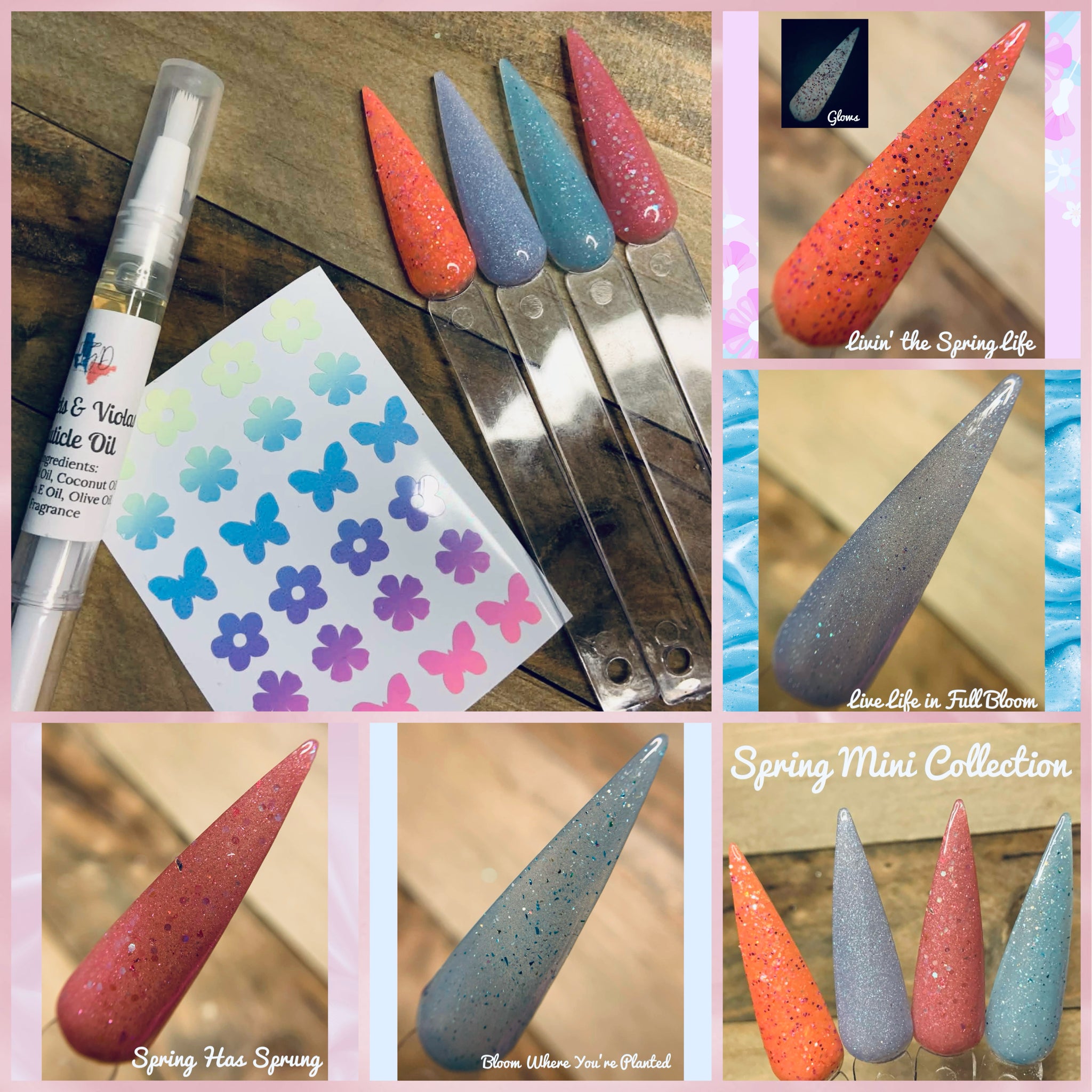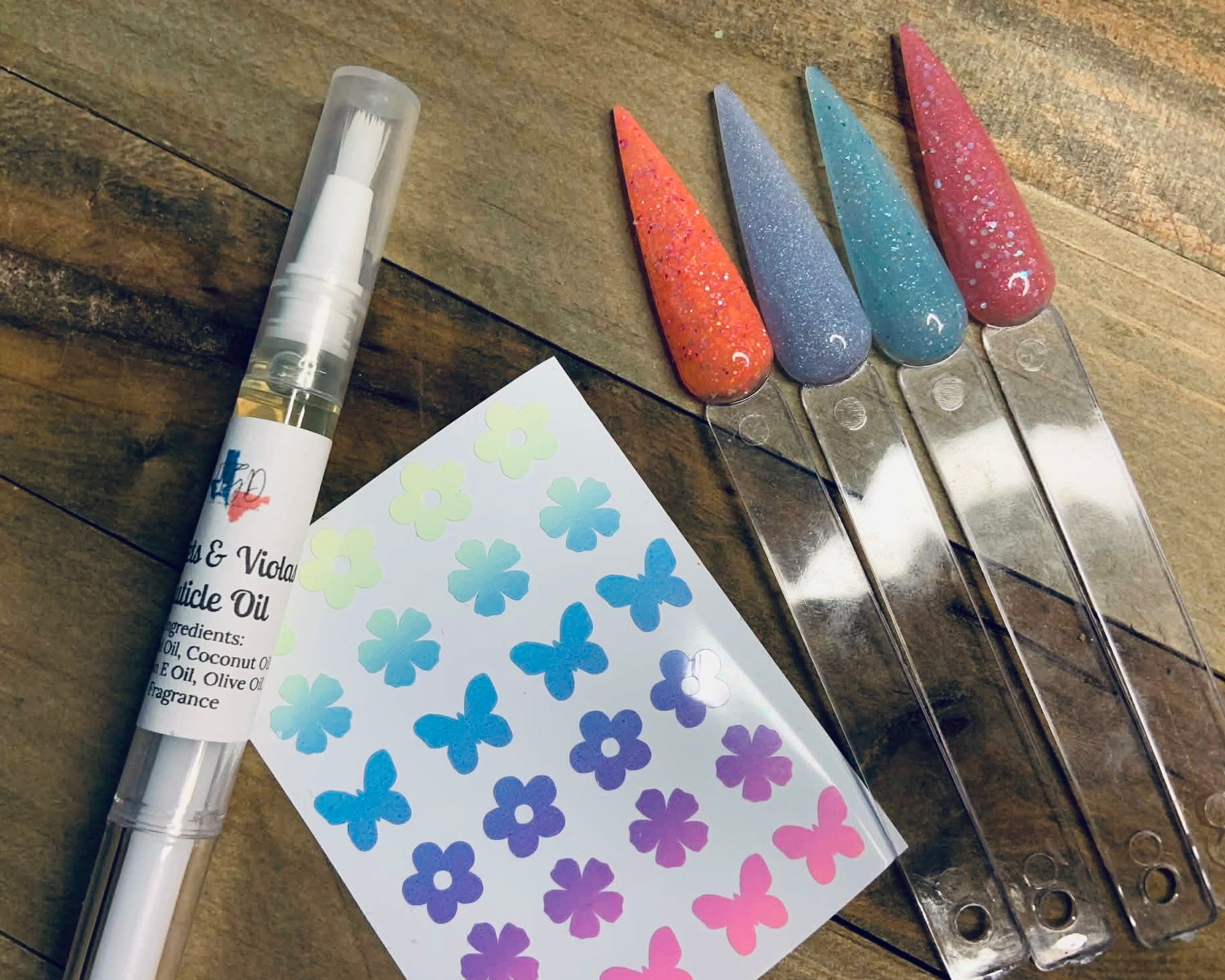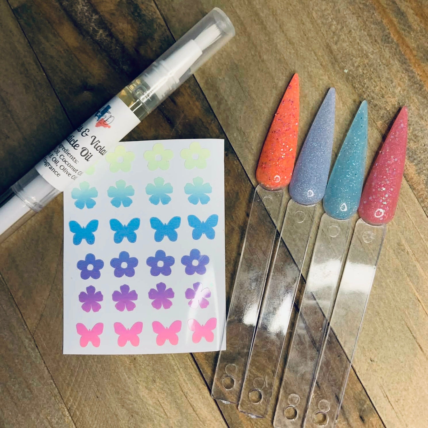 Includes 4 0.25 Oz dip powders, 1 cuticle pen, and 1 sticker sheet*